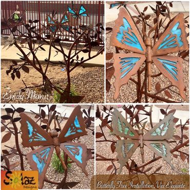 Each item is unique, hand-cut and though a few concepts, like flower-filled wall sconces, are repeated, no two items are alike.